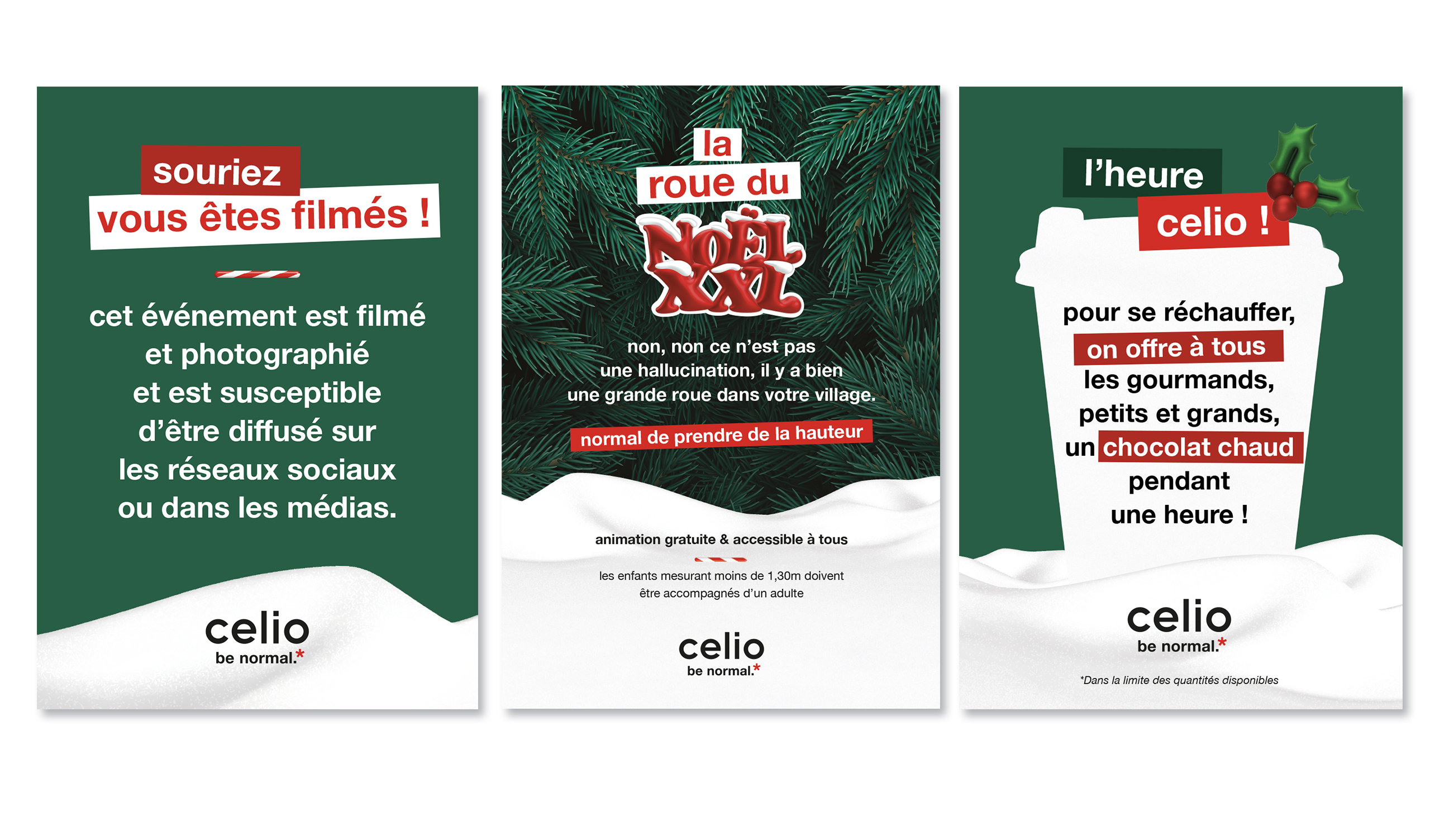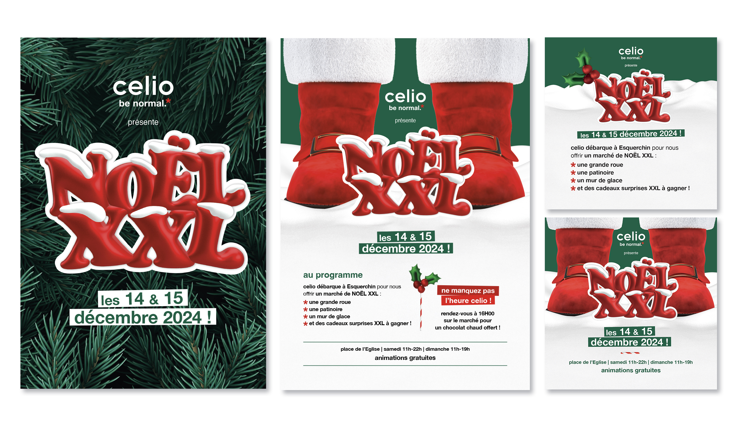 Dans le cadre de la campagne Noël XXL, j’ai eu la responsabilité de la réalisation de tous les supports destinés à accompagner CELIO et Wild Buzz Agency dans leur mission de transformer trois petites communes françaises – Beaulieu-sur-Dordogne, Goult et Esquerchin – en véritables marchés de Noël féériques.