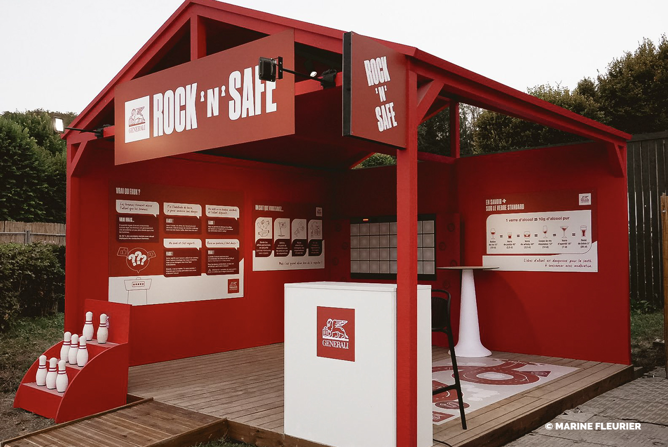 J’ai conçu l’ensemble des supports visuels et dispositifs pour les maisons thématiques de Generali, imaginées et produites par La Boîte de Prod dans le cadre du festival Rock en Seine.